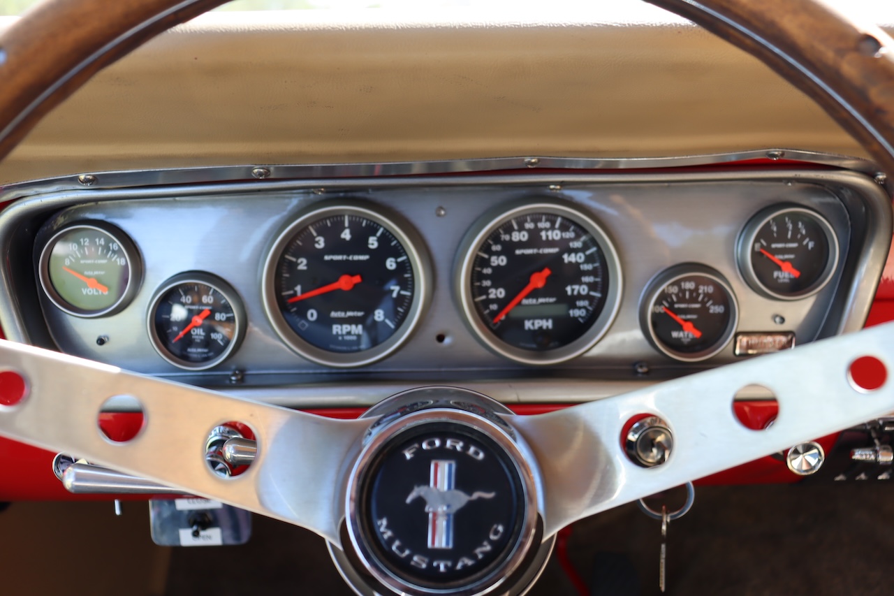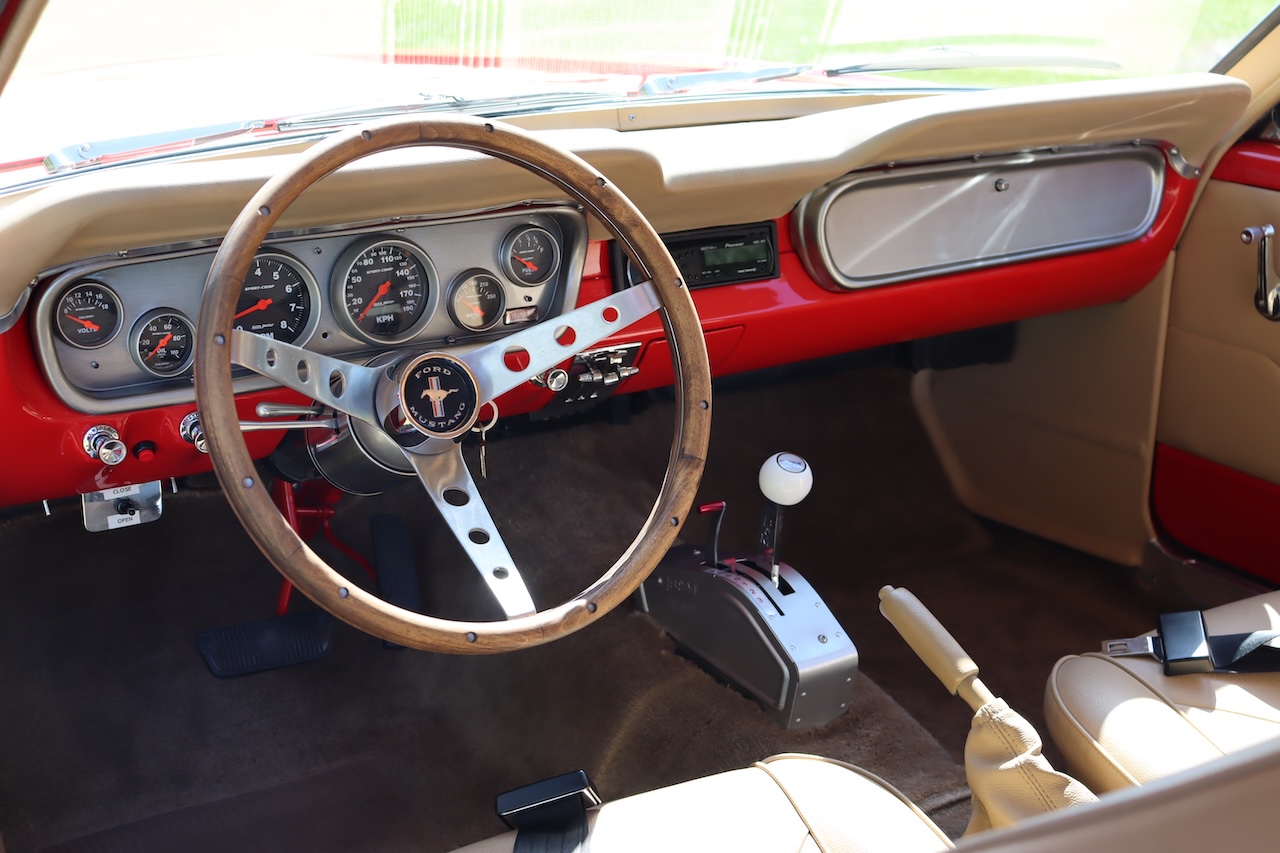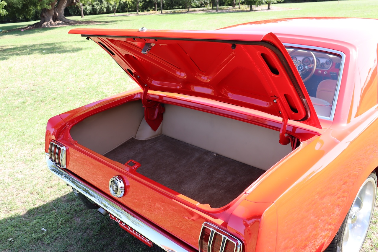 1965 Ford Mustang Hardtop/coupe in bright red. built Windsor 347 stroker coupled to an automatic transmission.